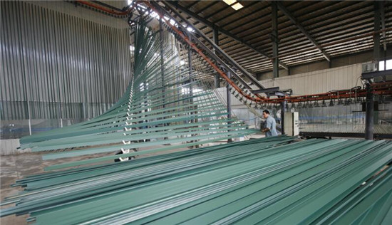 信牌鋁材擁有擁有2條國際先進的瑞士金馬立式粉末噴涂生產線,所生產的噴涂型材具有超強的耐候及物理性能。
