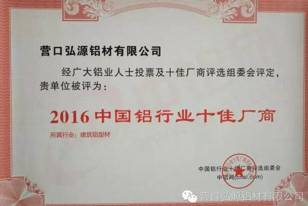 弘源鋁材榮獲中國建筑鋁型材十佳廠商 [2016-11-01]營口弘源“三強”鋁材通過持之以恒的積累和堅守,將會以更好的成績回饋大家的信任與支持!