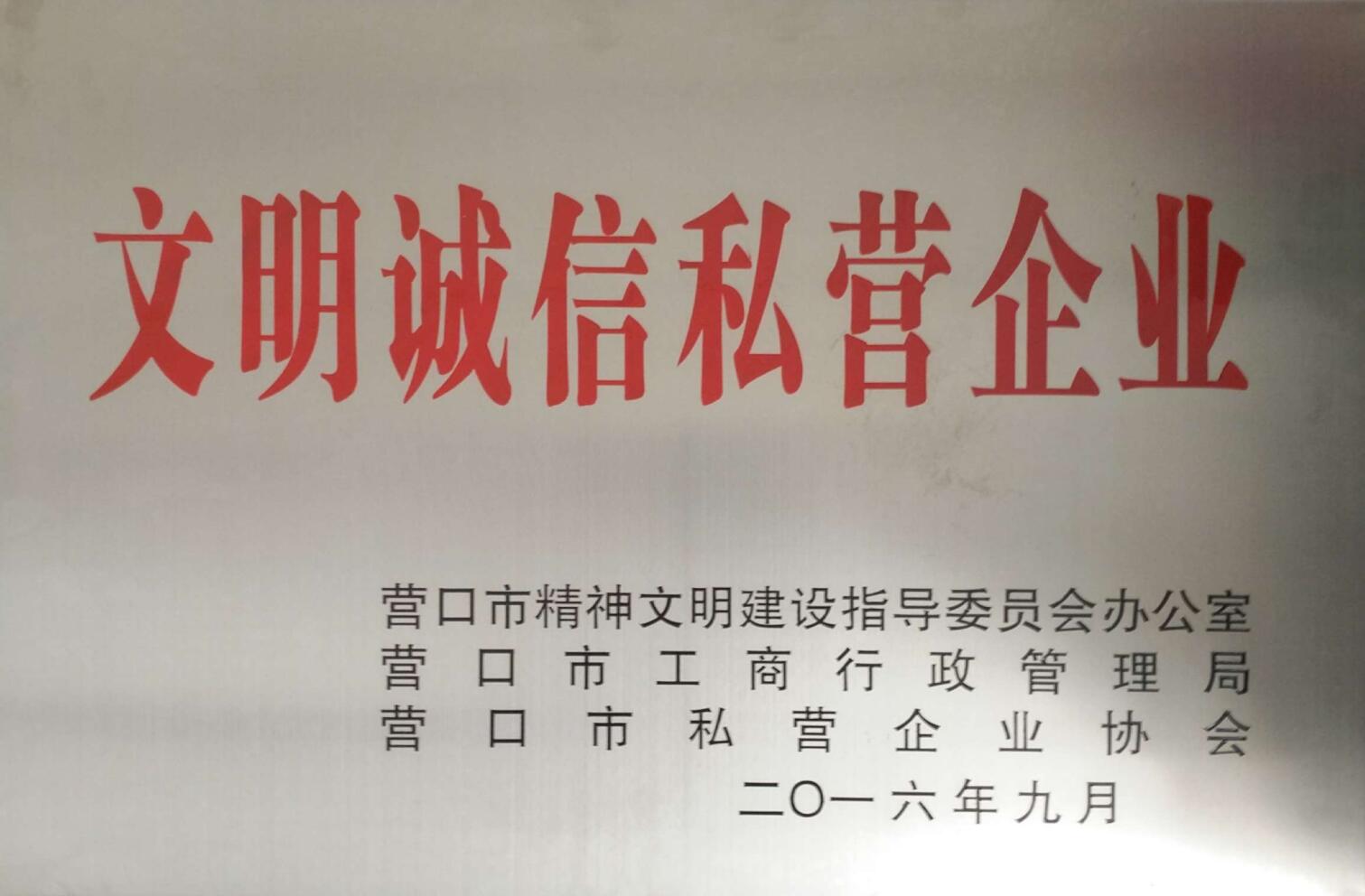 熱烈慶祝我司被譽為2016“文明誠信私營企業(yè)” [2016-12-26]遼寧營口弘源鋁材有限公司經(jīng)營范圍:生產(chǎn)工業(yè)型材,民用型材